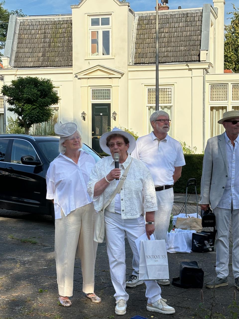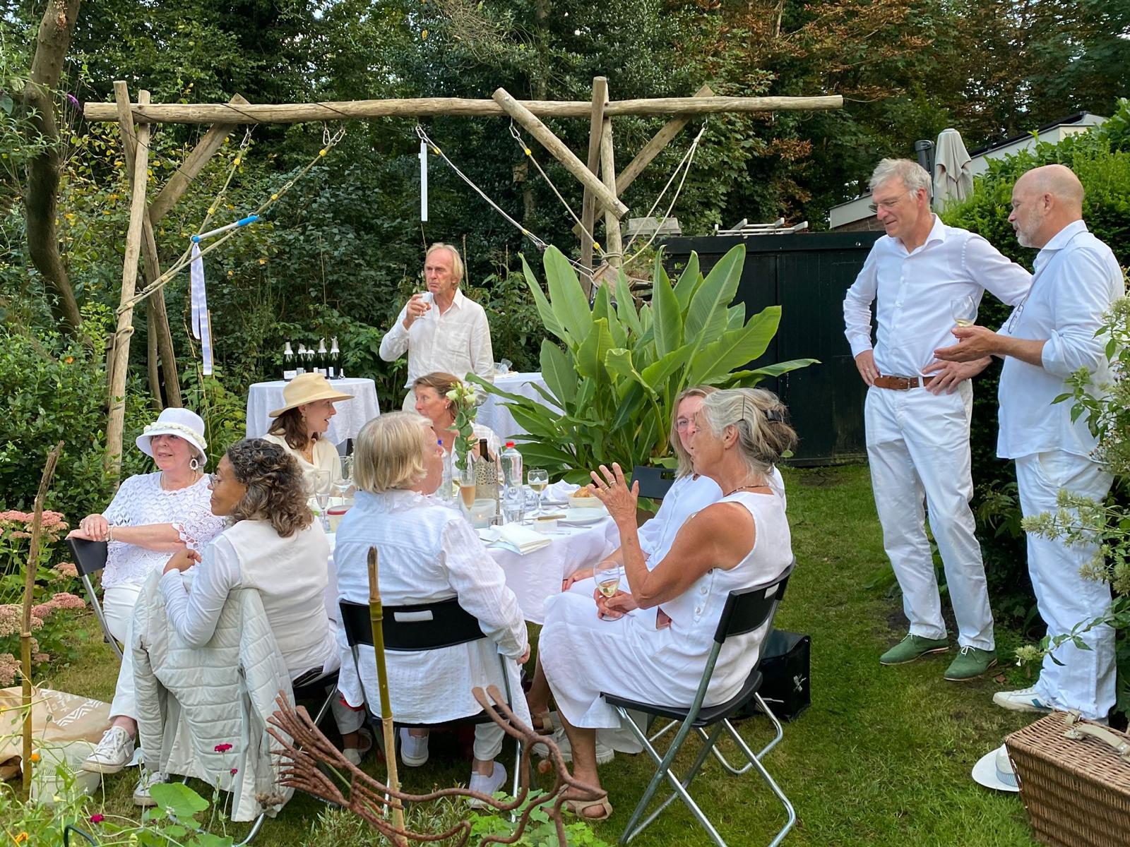 Wie had ooit gedacht dat er weer een Diner en Blanc in onze buurt zou worden georganiseerd. De laatste keer was immers in 2015. Op 7 september was het toch opnieuw zover en kleurden de straten en lanen wit. Zo’n veertig fraai uitgedoste buurtgenoten vanuit huis op weg naar een verzamelplaats in onze wijk. Gewapend met picknickmanden, gevulde tassen en andere draagbare attributen voor een zelf bereid 3-gangen diner met bijpassende dranken. Het zag er weer oogverblindend uit. En dat op een zeer warme dag waarop de zon volop scheen en het diner dus in de openlucht kon plaatsvinden tot laat in de avond.