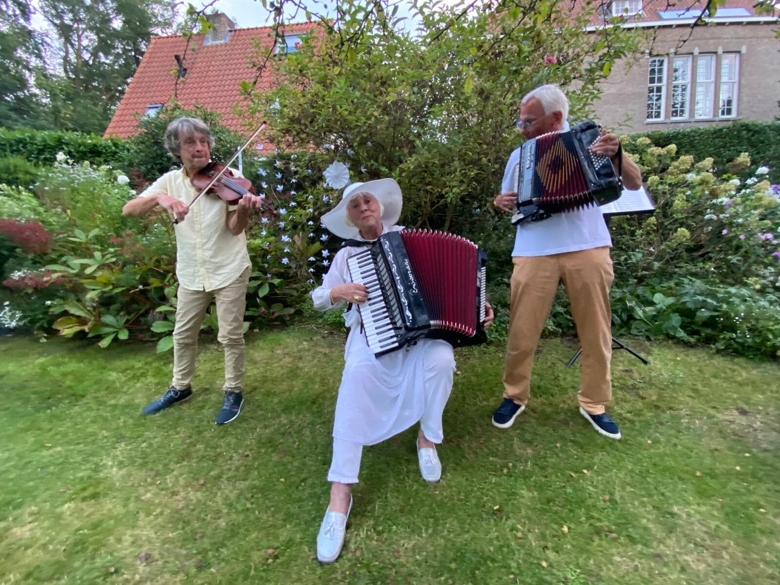 Gaandeweg de avond werd er ook volop met muzikale noten gestrooid door o.a. het Zeister duo Jan Hagens (accordeonist en piano) en Steeph Custers (viool). Het Diner en Blanc werd bovendien opgeluisterd door de komst van twee nieuwe buurtgenoten, onze in februari aangetreden burgemeester Joyce Langenacker in gezelschap van haar echtgenoot Stephan. Uiteraard beiden ook in het wit gekleed. Ze hadden de dag ervoor hun nieuwe huis in onze wijk betrokken. Een onverwachte, informele en zeer geslaagde kennismaking.