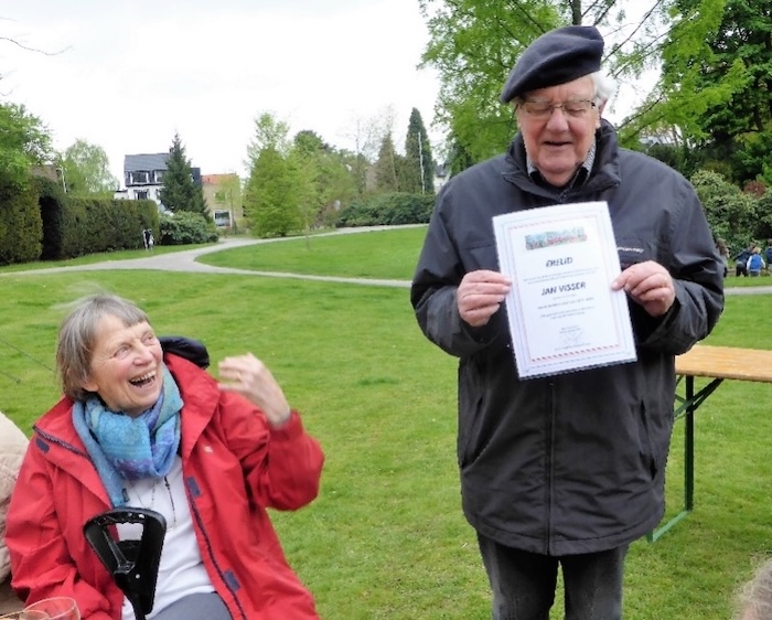 Kenmerkend voor zijn voorzitterschap was dat Jan en zijn vrouw Annie bij elk evenement, gezamenlijke bijeenkomst of buurtborrel steevast zichtbaar aanwezig waren en die trouw bleef nog vele jaren daarna totdat hun hoge leeftijd en breekbare gezondheid dat niet meer toelieten. Destijds reden om Jan met het erelidmaatschap van de buurtvereniging te honoreren tijdens het 25-jarig jubileumfeest op zondag 7 mei 2017. Jan was voor de eerste keer (?!) sprakeloos! Hij schreef 24 uur later in een e-mail aan mij, als toenmalige voorzitter: “Verbouwereerd vergat ik in die paar woorden die ik sprak jullie te bedanken voor de eer mij aangedaan. Bij deze dus… en zowel Annie als ik hopen nog veel jaren te mogen delen in warme persoonlijke banden die onze vereniging zo uniek maakt”.
