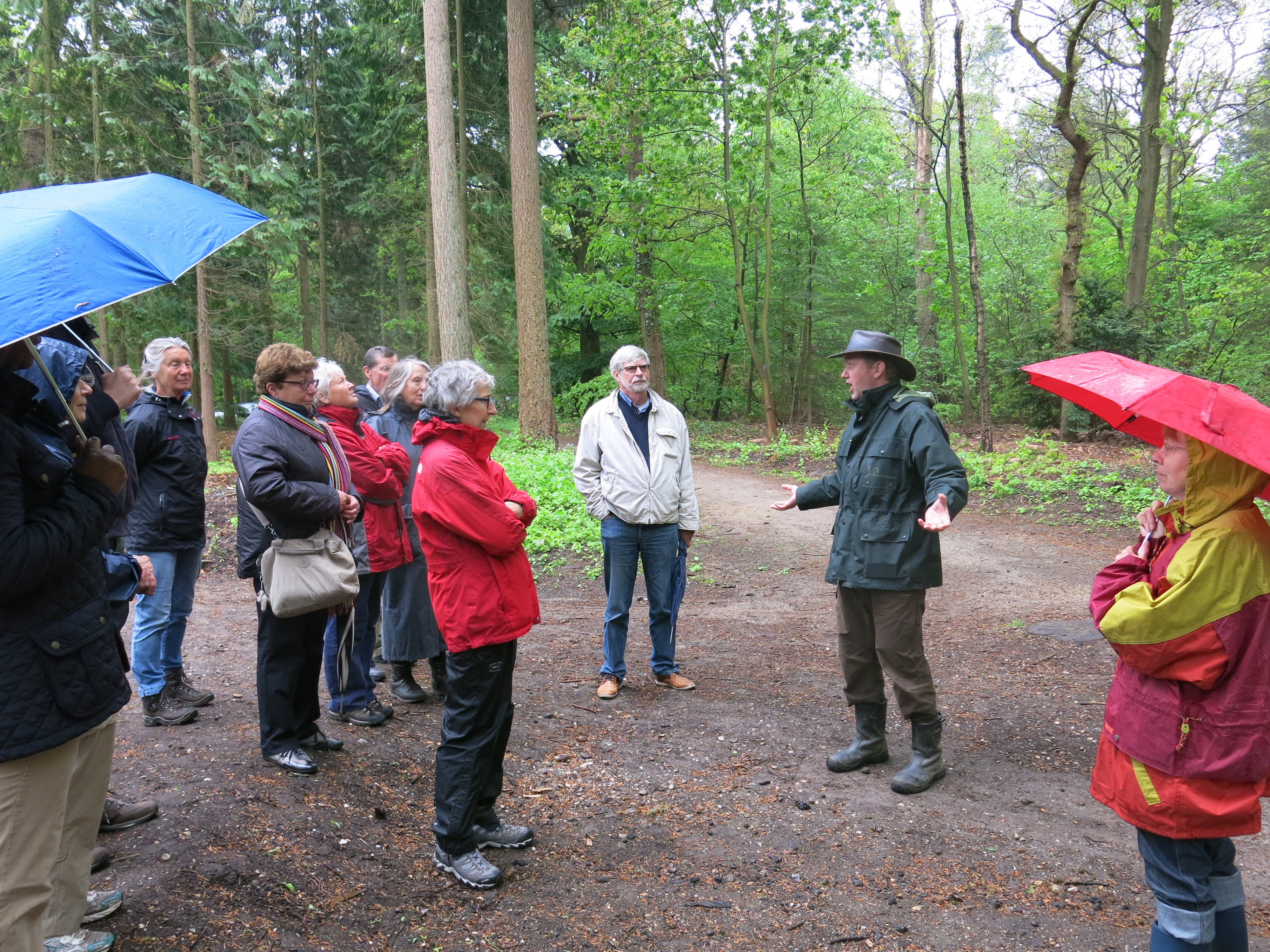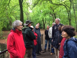 Gistermiddag (16 mei 2015 – net na de regenbuien) hebben we een interessante en instructieve boswandeling gemaakt onder leiding van boswachter Joris Hellevoort van het Utrechts Landschap. De 14 deelnemers weten nu dat ze niet moeten spreken van bomen kappen maar het bos uitdunnen om andere bomen, soms zeldzame en/of zeer oude bomen (bv uit 1850) meer gelegenheid te geven om te blijven bestaan. Ze hebben diverse ontdekkingen gedaan terwijl zij toch als de buren van het Zeister Bos al veel denken te weten..! Was u er niet bij, dan heeft u beslist wat gemist, maar er komt een herhaling!